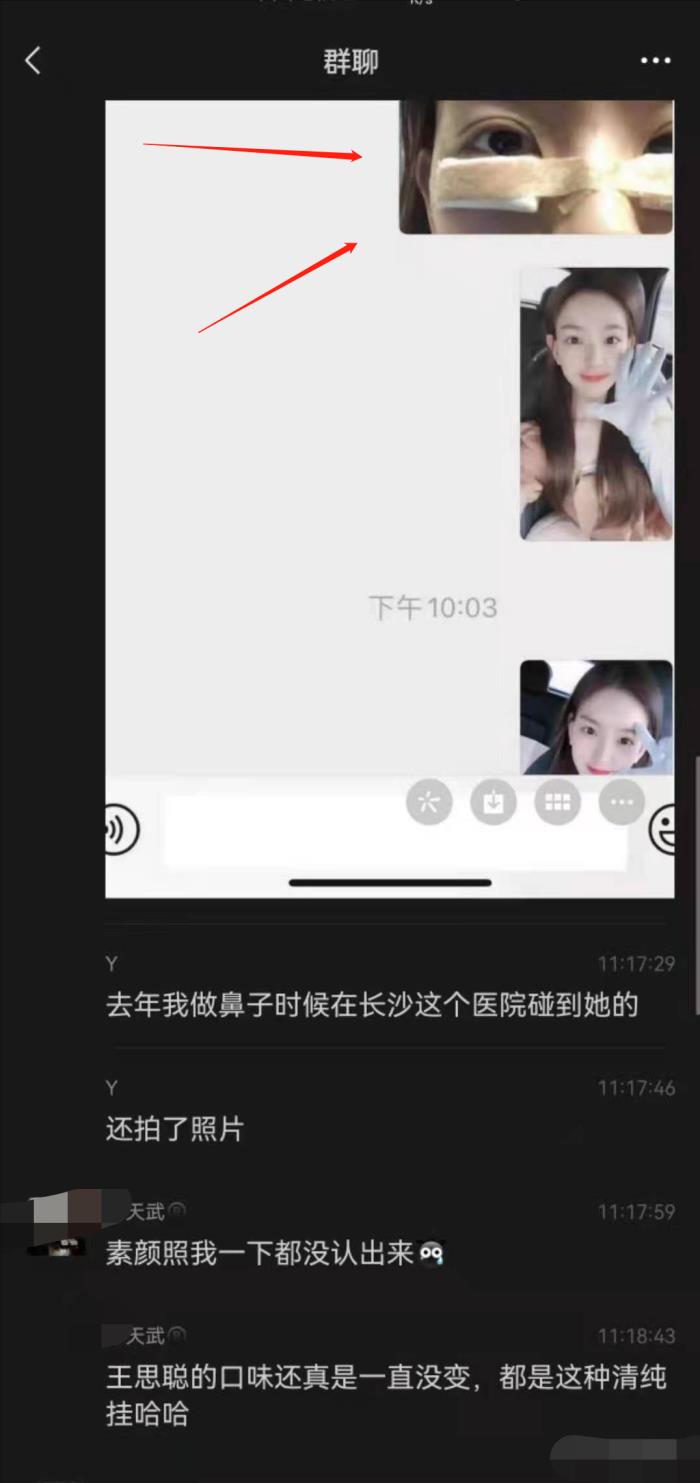 此前孙一宁和王思聪刚开撕的时候,王思聪的聊天记录里就有一张孙一宁的旧照。