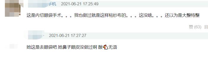 对此,不少网友都觉得她是做了内切眼袋手术,也有人认为她开了眼角和双眼皮。