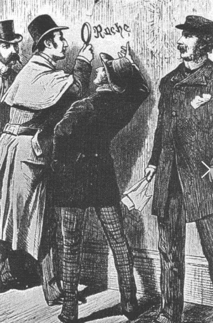 1887年,画家大卫·亨利·福瑞斯顿(David Henry Friston)受邀给《血字的研究》画上插画,这是柯南道尔笔下的福尔摩斯第一次出现在人们面前。在大卫的笔下,福尔摩斯身披斗篷,手持放大镜,头上戴着的并非猎鹿帽,而是一顶高礼帽——这是维多利亚时代最受绅士欢迎的帽子。