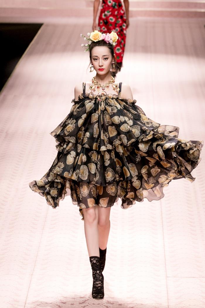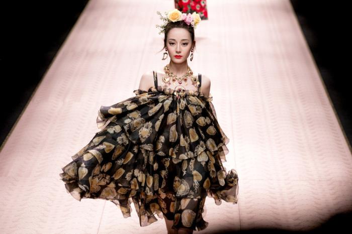 迪丽热巴登上米兰时装周的舞台,九零后的她气场十足,眼神自信。此外,她还穿了一双刺绣小短靴,走起路来非常轻盈。