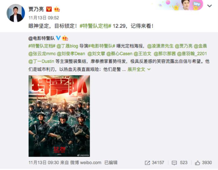 翻看贾乃亮可以看见他还是低调的进行个人生活,最新的一条动态停留在13号为新电影做宣传。