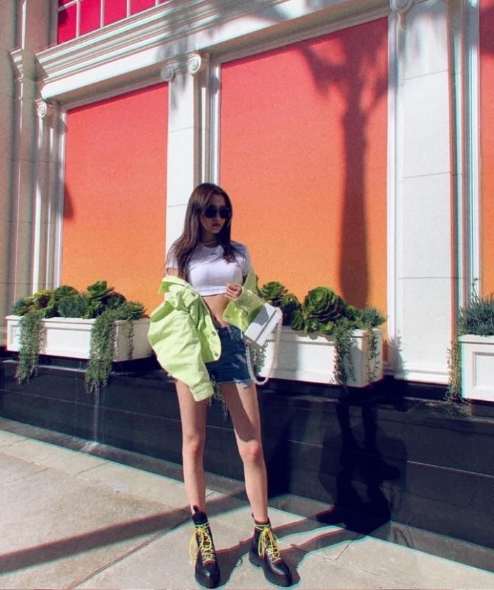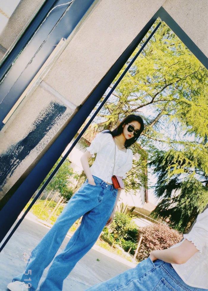 看看着大长腿和好比例,这才是泫雅风老爹裤的正确打开方式呀。显矮显胖这事都完全不会发生,酷劲十足非常有星范儿。简约穿搭清新耐看,日常照着这样穿还真不赖呢。时髦利落的,尽显你的时尚好品味。