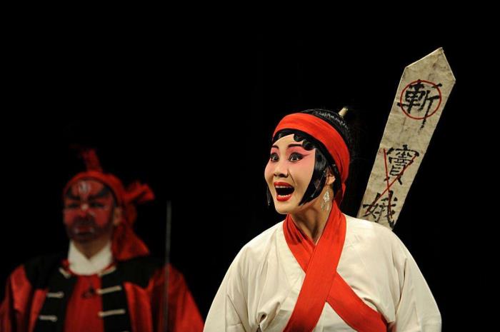 第一桩誓言其实是化用了古典文学名著《搜神记》中周青的故事。书中记载,周青血溅素幡,逆流而上。在这基础上,关汉卿又加入了苌弘化碧、杜鹃啼血的典故。"我不要半星热血红尘洒,都只在八尺旗枪素练悬。等他四下里皆瞧见,这就是咱苌弘化碧,望帝啼鹃。"
