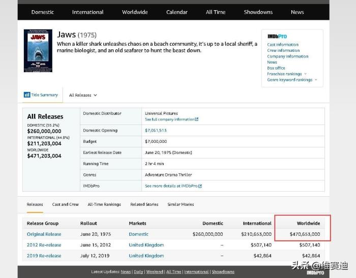 事实上,早在1975年,他执导的第一部电影《大白鲨》就凭4.7亿美元的票房拿到了影史票房NO.1了。