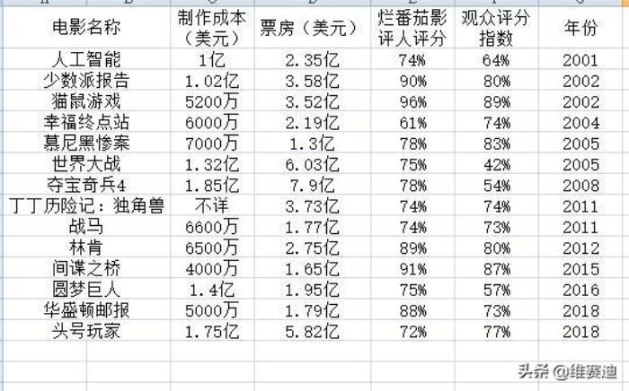 事实上,从制作成本跟票房的数据来看,斯皮尔伯格在新世纪的这些电影绝大部分依然能非常稳定地盈利,这本身就是他执导能力的绝佳体现。