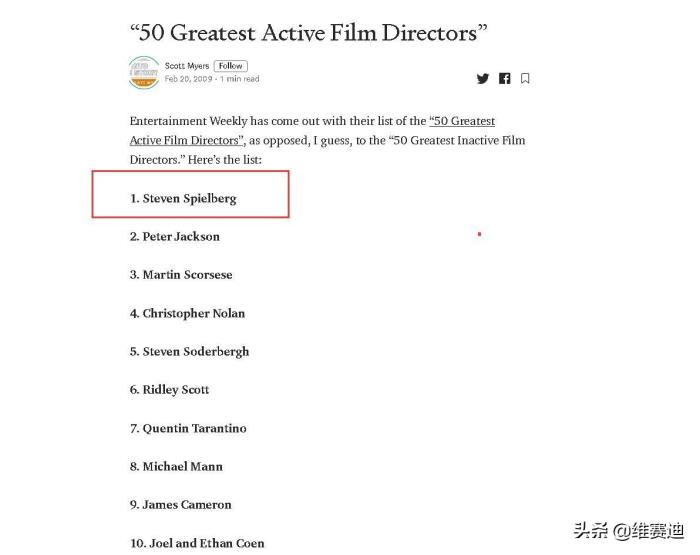 2009年的《娱乐周刊》,又再次被评选为当代最伟大的导演X3。
