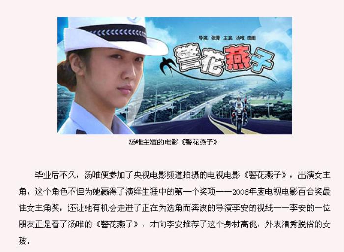 就在李安在选角过程挑花了眼的时候,一位看过《警花燕子》的朋友,向李安推荐了汤唯。