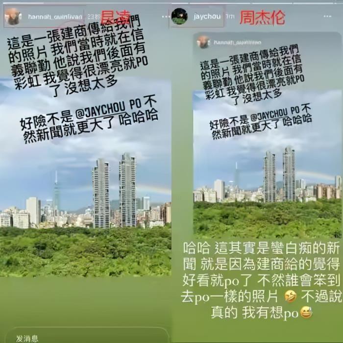 2020年,侯佩岑就因为昆凌发布了自己的同款“彩虹图”身陷话题中心,随后还在周杰伦夫妇一前一后“还好不是周杰伦发布”的互动中尴尬不已。