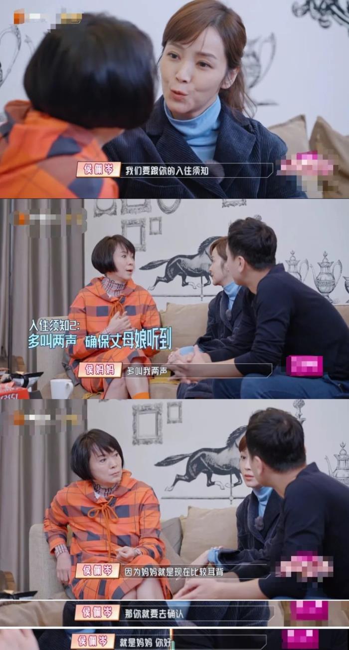 提前了解妈妈的担忧之后,侯佩岑又以“入住须知”为理由主动引导妈妈同黄柏俊沟通,并且在妈妈提出“多叫自己两声”的意见之后,在一旁解释妈妈提出要求是因为年龄大了听力下降。