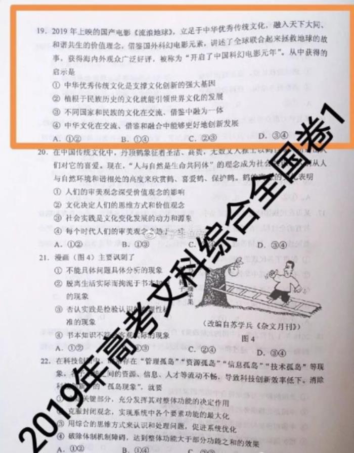 6月9日,《流浪地球》以政治选择题的形式出现在高考文综试卷上,考题为“《流浪地球》体现了什么样的文化传统?”一时间,科幻元素再次成为关注焦点。
