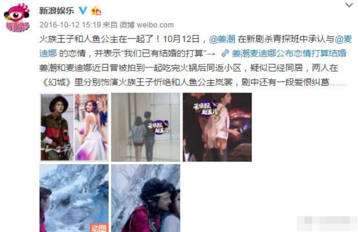 有网友爆料,姜潮的妻子是麦迪娜。两人因为《幻城》结缘,现在突然传出两人结婚的消息,很多吃瓜网友表示“我家刚通网吗?”现在两人还没有做出什么回应。