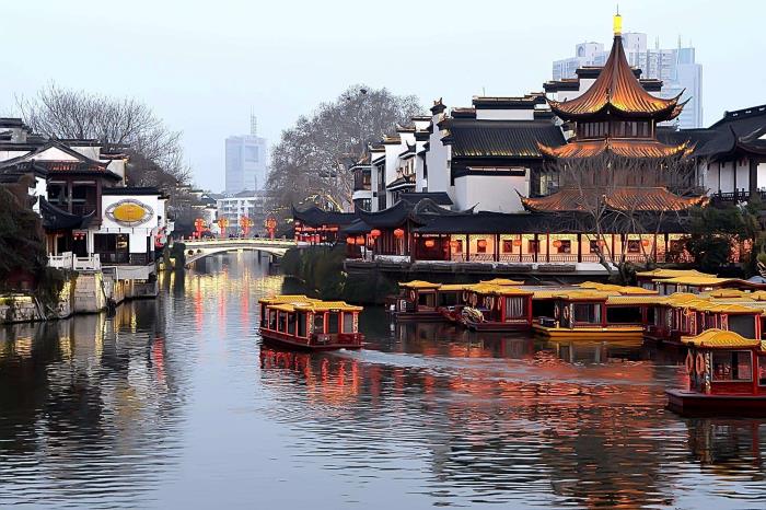 南京夫子庙位于南京市秦淮区秦淮河北岸贡院街、江南贡院以西,即南京孔庙、南京文庙、文宣王庙,为供奉祭祀孔子之地,是中国第一所国家最高学府,也是中国四大文庙,为中国古代文化枢纽之地、金陵历史人文荟萃之地。夫子庙是一组规模宏大的古建筑群,主要由孔庙、学宫、贡院三大建筑群组成,占地极大。有照壁、泮池、牌坊、聚星亭、魁星阁、棂星门、大成殿、明德堂、尊经阁等建筑。夫子庙被誉为秦淮名胜而成为古都南京的特色景观区,是中国最大的传统古街市,与上海城隍庙、苏州玄妙观和北京天桥为中国四大闹市。