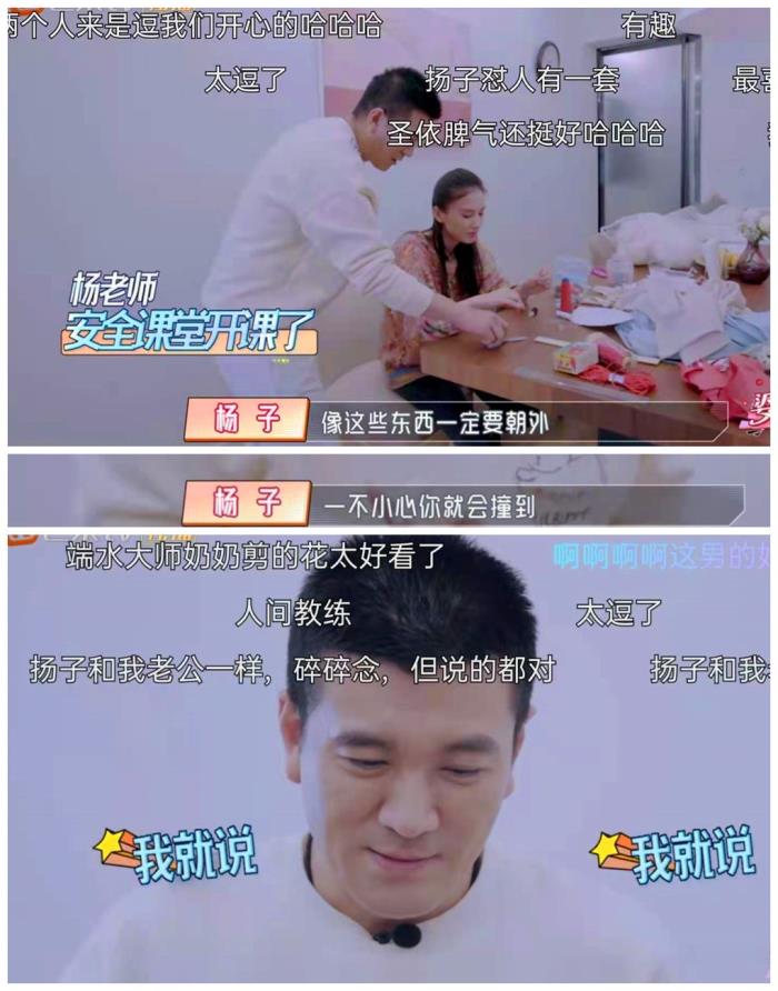 黄圣依干活时,杨子先是在旁边叨叨。自己上阵时,还继续吐槽“老黄同学典型的不太动脑子”。