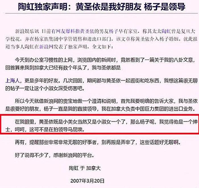 比如黄圣依被指是杨子和原配的“介入者”。即使是“受害者”出面辟谣,也仍然有很多人表示“我不听,我不信”。
