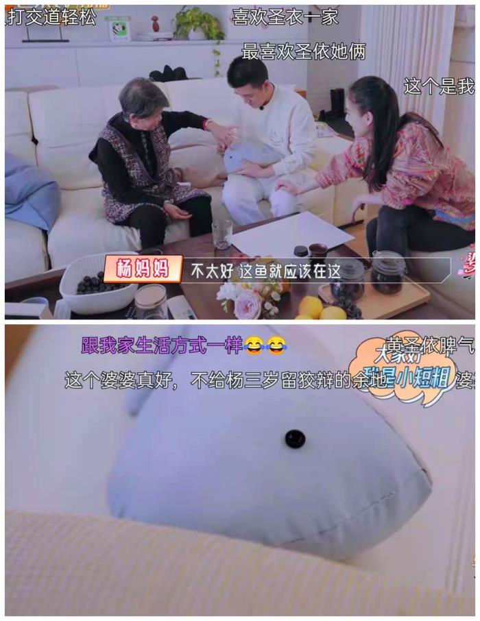 杨子摊的鸡蛋好吃,黄圣依做的酸奶也挺好;杨子吐槽黄圣依针线活不行时,刘丽芹却夸黄圣依聪明;杨子觉得黄圣依给布鲸鱼缝的眼睛位置不对,老太太立马给儿媳撑腰“就应该在这”。