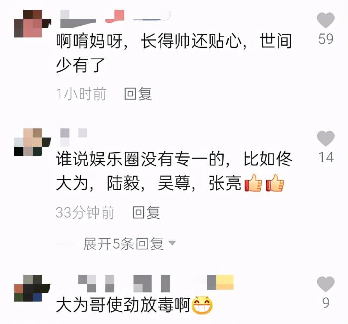 佟大为给关悦的惊喜也送到了网友们的心坎上,有网友称“长得帅还贴心,世间少有了”,也有网友称“谁说娱乐圈没有专一的,比如像佟大为”。