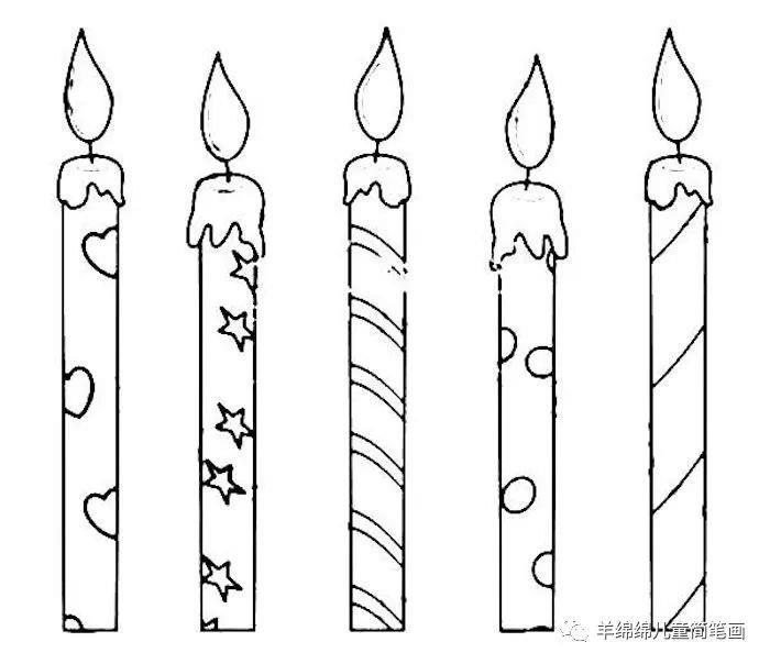 蜡烛的画法也很多,试试用不同的图案装饰蜡烛吧