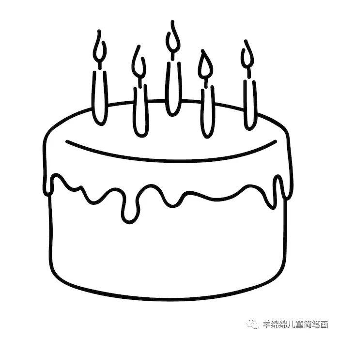 首先,从底部开始画,然后,用波浪线画出奶油,再一层层画出蛋糕,接着,装饰几只蜡烛、小花和圆形图案,这样蛋糕看起来更加精美,最后,涂上你喜欢的颜色吧。