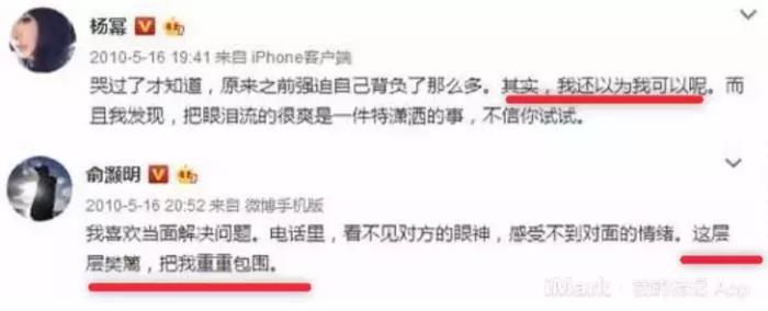2011年,俞灏明远赴美国治疗,在大洋彼岸孤独地接受复建。而杨幂随着《宫》的热播,事业迅速红火,忙着与男星炒cp。俞灏明在那段时间不仅身体遭受到巨大的伤害,心灵也受到了严重的创伤,他还开了一个小号纾解自己的心事。