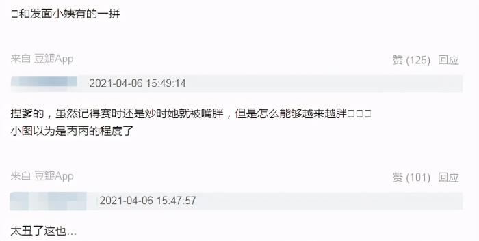 有网友直言“虽然记得之前她就被说胖,但是怎么能越来越胖”,也有网友表示“虽然糊成素人也要注意一下身材管理吧”,甚至有网友吐槽“她一直都是火箭少女101中最肥的”。从这些网友的评论中,看得出他们也是比较惊讶的了。不得不说的是,作为一位爱豆,杨芸晴还是需要注意一下身材管理了。