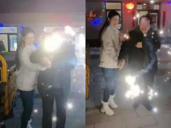 两人在转烟花的过程中,身体贴得比较近,并且在此过程中,唐鉴军一直紧抓着毕畅的手,而他的的手肘一直都抵在毕畅的胸口附近,毕畅也连忙用另一手手挡在两人之间,隔开了一段距离。
