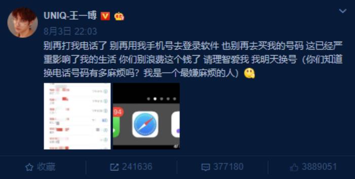 王一博前不久,在收到194个未接来电之后,忍不住在微博喊话: