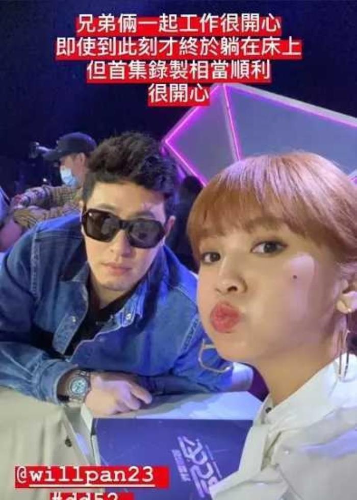杨丞琳配文表示和潘玮柏"兄弟俩"一起工作很是开心,此刻才可以躺在床上,首集的录制相当顺利。据悉,杨丞琳和潘玮柏在台湾女团选秀节目《菱格世代Dancing Diamond 52》中担任导师,此前因疫情原因推迟录制,这也是二人首次同在一档女团选秀节目中担任导师。