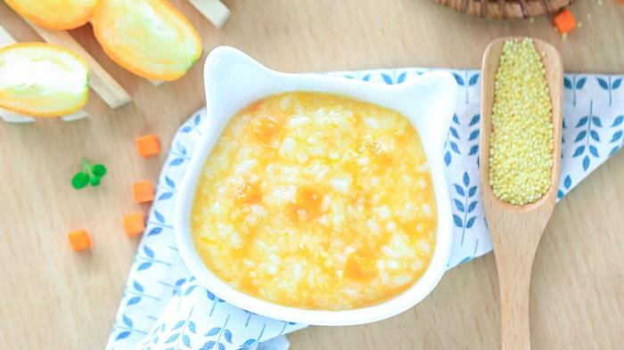 准备食材:马蹄15克,南瓜15克,小米20克,金桔15克,宝宝粥米35克。