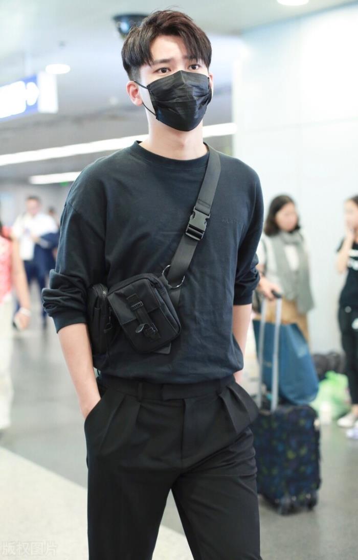 熊梓淇一袭暗黑现身,简约穿搭很帅气,188cm的衣架子让人羡慕。
