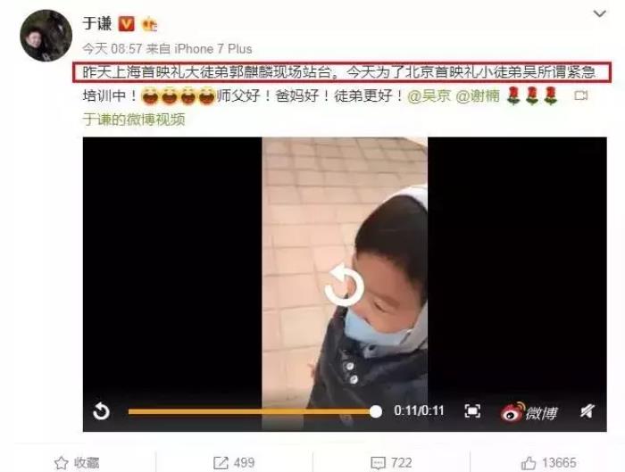 在3月19日上海首映礼上,于谦的大徒弟郭麒麟有到现场站台,如今小徒弟也来支持,这也证明了于谦在娱乐圈的人缘是真的好。