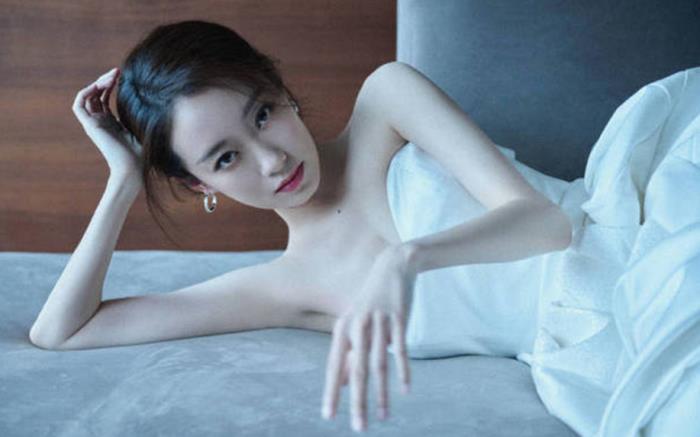 照片里,张小斐身穿一袭抹胸白色长裙,盘起来的头发凸显了精致锁骨,皮肤白净身材纤细,粉色妆容衬得她清纯又活力,随意蜷缩在沙发角落姿态慵懒。张小斐用手微微遮挡事业线,眼神又纯又欲。