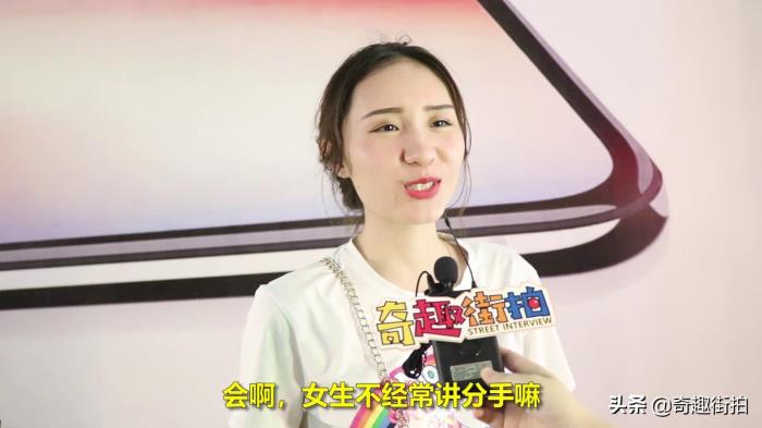 第一个被采访的女生明确表示会,并且说女生经常说要分手。一点小事就分手。据说小编会想到她的朋友。确实很多女生和男朋友每天都有这种情况。然而,他们都在生气的时候当场分手,然后过了两天,他们又开始展示他们的爱。单身狗伤不起。