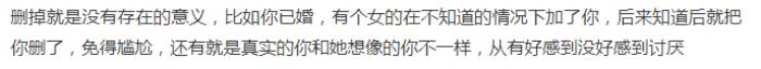 3.她不愿当你的备胎。,你可能只把她当成好朋友,但她总想和你共度余生。这种关系让她很痛苦,而你对她只有暧昧,所以她只能通过删除你的微信来解放自己!