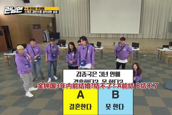 在最新一期的《running man》中,节目组抛出一个话题让大家讨论,那就是在三年之内,金钟国能不能结婚?