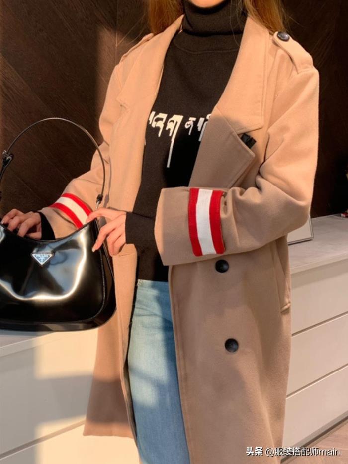 而且黑色的打底衫最好搭配了,外穿一件经典卡其色大衣,格外显气质。