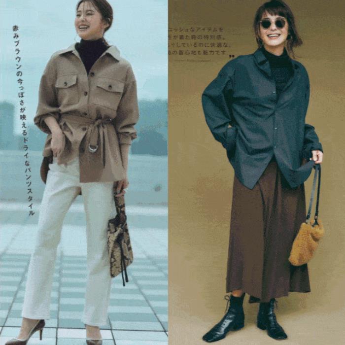 打底衫除了能跟厚外套进行搭配外,也能够与单薄衬衫组合。