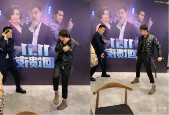 随后,陈国坤还与现场的主播互飙起了双节棍,两人同时还模仿了李小龙的经典动作——摸鼻子。现场陈国坤的动作仍是有模有样,可以看出功底来,只是岁月流逝,陈国坤的变化不小,也很难再有昔日饰演李小龙时的风采。