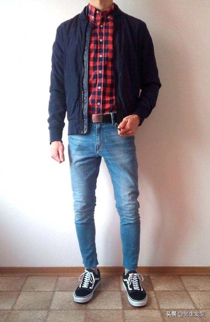 商务范的男士,可以选择一件黑色的夹克,内搭同样可以是格子衬衫,下半身是牛仔裤,然后把衬衫塞进裤子,让整个穿搭更加干净利落,不拖泥带水,低调又不失帅气哦!