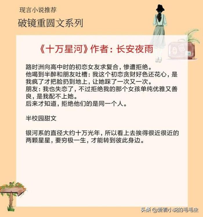 解决了上一代的恩怨也意识到了女主对他的重要,于是展开了一场长路漫漫的追妻之旅。本文文笔细腻,基调轻松,剧情节奏紧凑,刻画了男女主的蜕变与成长。女主由一个有些胆怯安静的小女生变成了能独当一面的金牌设计师,而男主也放下了上一代的恩怨与仇恨,开始享受和女主在一起的生活。5本深情感人的破镜重圆文,念念不忘,必有回响