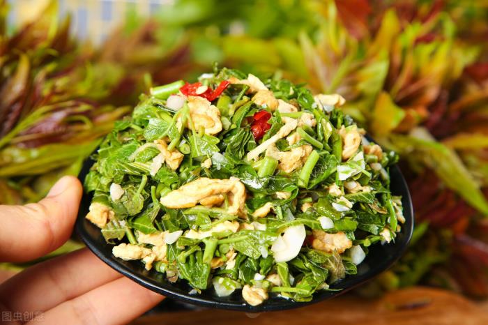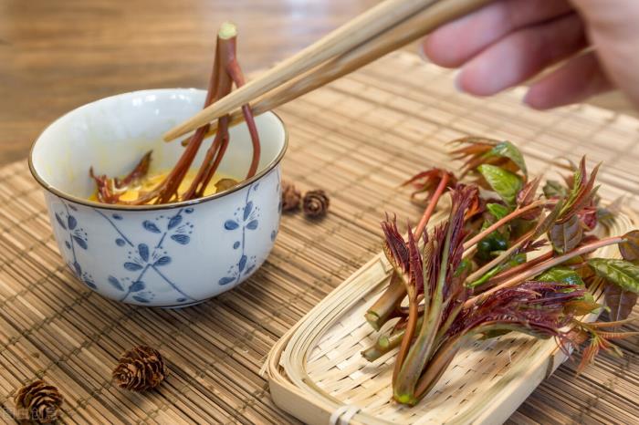 香椿作为一种树上的嫩芽,含有丰富的营养,包括钾、钙、镁元素。另外,维生素B族的含量在香椿中也较多。