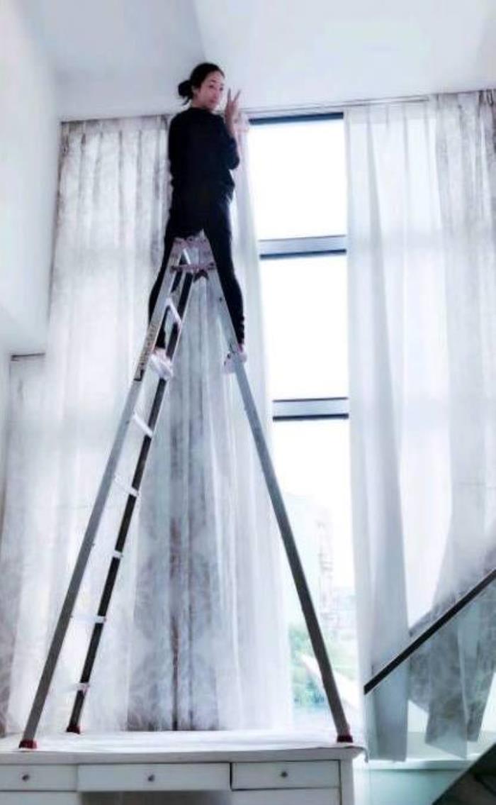 她还有类似的“炫富”经历,之前晒出自己动手爬上很高的梯子,给窗户挂窗帘。本来是要表示自己能动手挂窗帘。但是细心的网友就发现了,她的梯子下边还垫了一张桌子,这房间是有多高。有这么高房间的别墅,价值起码是几个亿了。就是这种无意间就“炫富”了。