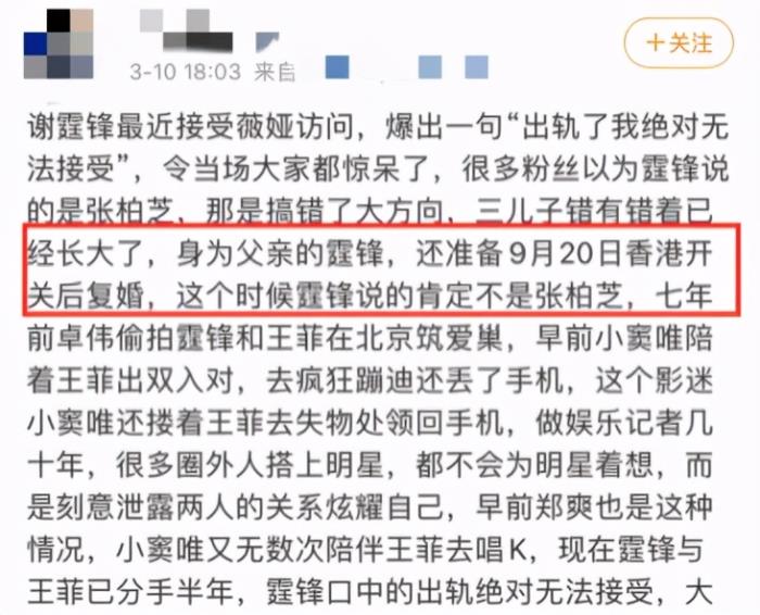 前段时间谢霆锋现身薇娅直播间,称自己无法接受出轨,而现任王菲却经常与男性友人甜蜜游玩。因此有娱记爆料称他将与张柏芝复婚,不过这只是媒体们的猜测。