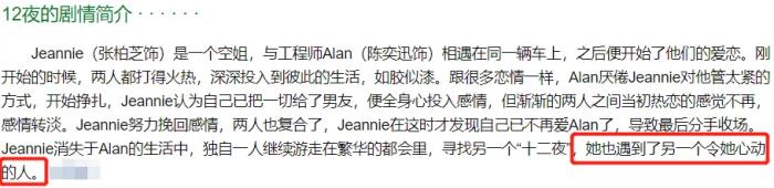 《12夜》讲述是一场只经历了12个夜晚的爱情,女主张柏芝本以为和男主陈奕迅是命中注定,结果发现他们的感情从一开始就是一个误会,所谓爱情就此消散,而就在最后一晚张柏芝又遇到了另一个令她心动的人,那就是谢霆锋。