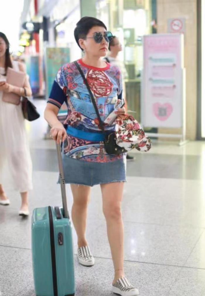 张凯丽也算是一个老戏骨的,除了在演技上征服了大家之外,她的搭配也总是备受关注,而且在搭配这方面,张凯丽自身也有些精彩的演绎,这一次她的机场搭配就非常简约,印花短袖搭配牛仔半身裙,清新时髦,呈现的风格很靓丽,根本就看不出张凯丽的实际年龄,再加上她的短发给人一种很潇洒的气质,真的太美了。张凯丽才是大婶辈的穿搭典范,印花T恤配短裙,单靠大长腿就赢了!