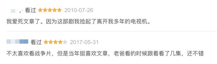 就连不喜欢看抗战剧的观众,都坦言因为文章的表演,在家和爸妈一起把这部剧看了不下十遍。