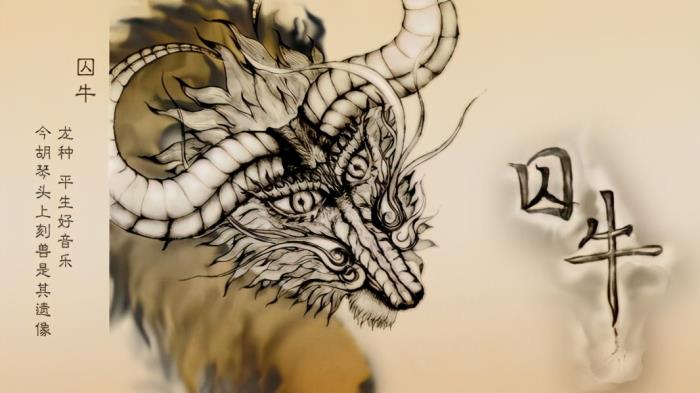 所以我们常说对牛弹琴,有可能这头牛真的能听懂琴声哦。龙的二儿子叫做睚眦(yazi),传说是龙和母豺所生,龙感觉这个孩子是个耻辱,于是打算杀死这个孩子,但是母豺苦苦哀求,最终得以保全性命。