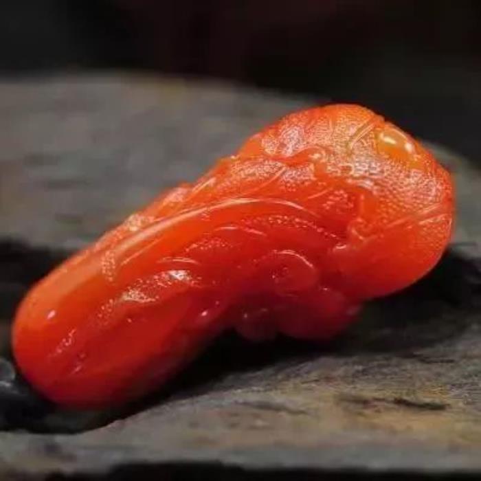 这种来自蒙古国的南红,品质参差不齐,顶级的料子外观上类似于四川九口料的柿子红,内部绺裂较多却类似于保山料。也因此往往被不良商家当作川料南红柿子红的替代品。