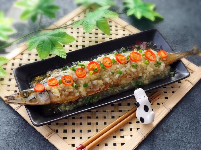 按照日式做法做出来的秋刀鱼味道是比较简单的,要是要换个吃法,可以尝尝中式做法,多放点配料,口感也会丰富很多。