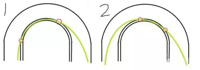 虽然在现实中,排水道过弯的技术确实存在(拉力赛里面这种技术叫cut),其中CUT还分内道入弯(1)和延迟入弯(2)。