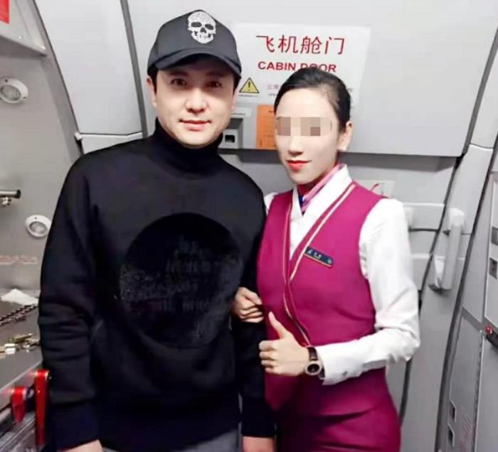 另一张照片里,空姐和沈腾贴脸合照,一只手搭在沈腾的肩膀上面,两个人脸上都带着笑容。